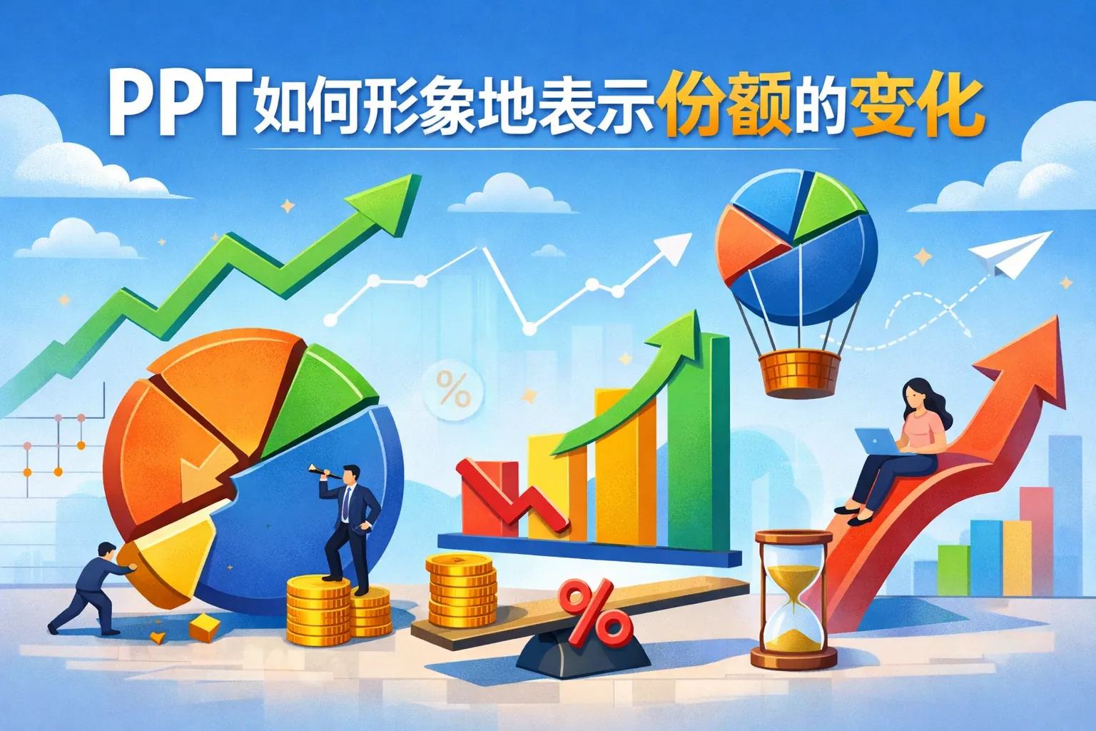 ppt如何形象地表示份额的变化