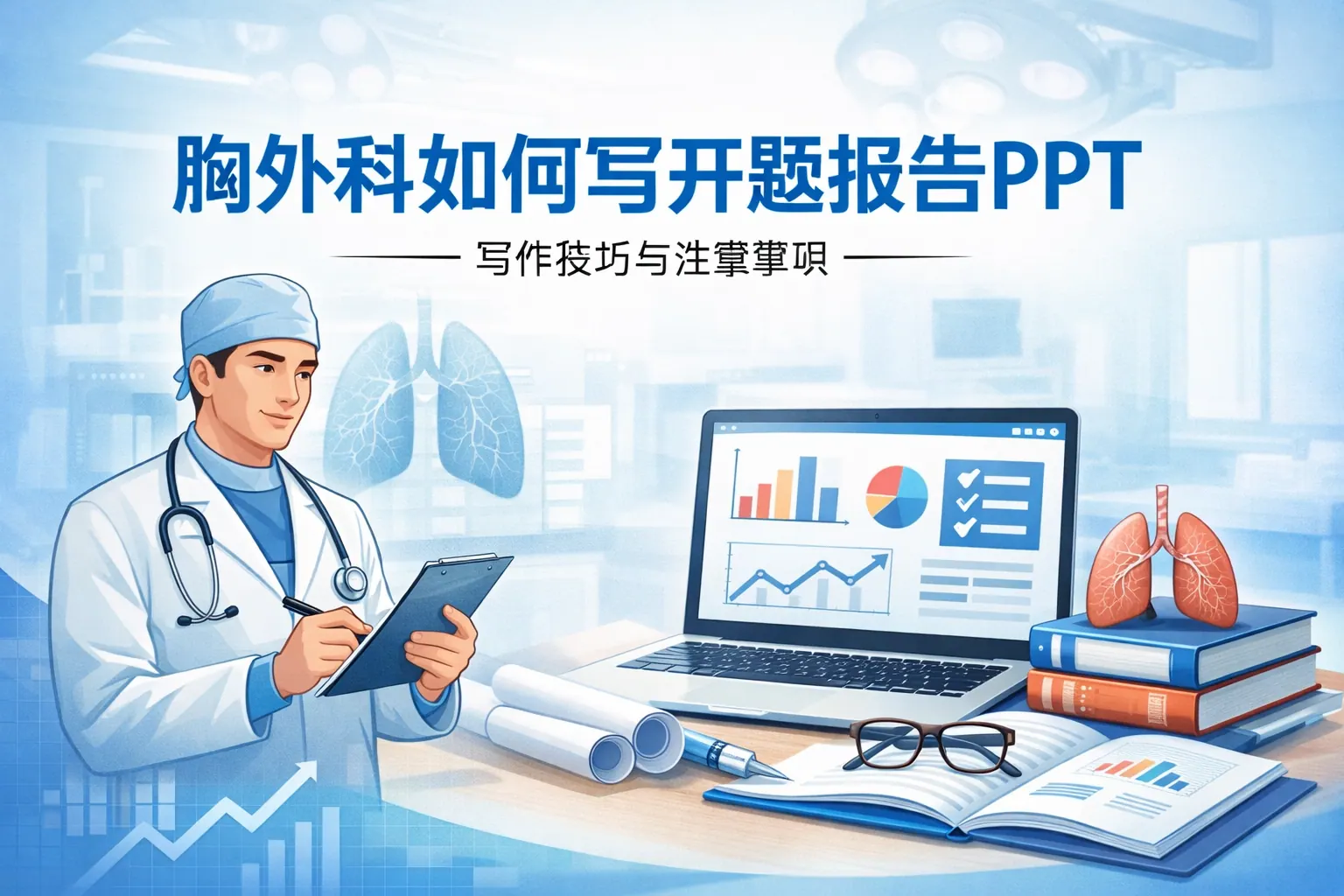 胸外科开题报告PPT的撰写核心在于问题清晰、结构严谨与研究设计科学。文章系统梳理了胸外科开题报告的标准结构,包括研究背景、研究现状、研究目标、技术路线、统计方法、创新点与可行性分析等关键模块,并强调样本量计算与统计设计的重要性。同时结合肺癌与微创手术研究趋势,说明如何通过权威数据强化选题价值。通过合理的时间规划与成果预期设计,可提升立项成功率。未来胸外科科研将更加注重精准医学与数据整合能力,开题报告也需体现前瞻性与跨学科思维。