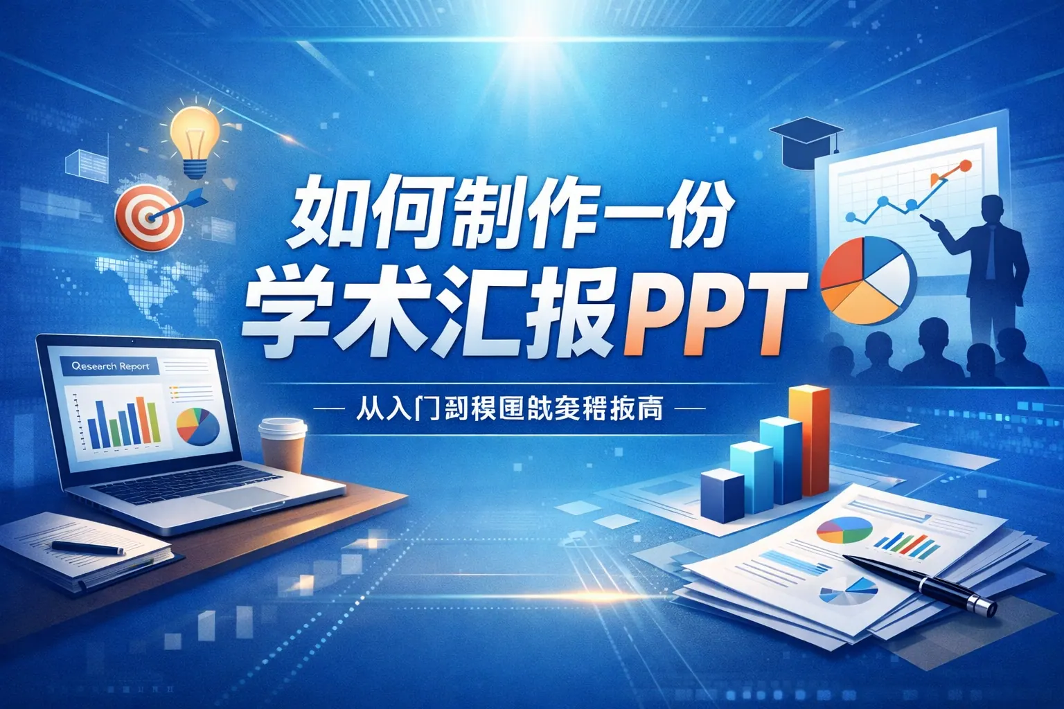 制作学术汇报PPT的关键在于以研究问题为核心构建清晰逻辑结构,遵循标准学术框架,将方法与结果通过高质量图表呈现,并通过简洁专业的视觉设计提升表达效率。同时合理控制时间节奏,突出创新贡献,针对不同场景优化内容结构,避免文字堆砌与逻辑混乱。未来学术汇报将更加注重互动性与数据可视化能力,研究者需兼顾内容深度与表达形式,提升整体学术传播效果。