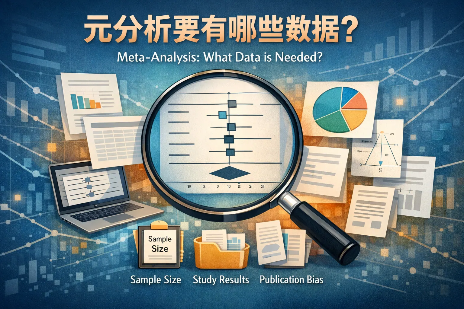 元分析所需数据包括研究基本信息、样本与基线数据、干预与对照信息、效应量及统计指标、异质性参数以及偏倚风险评估数据等。其中效应量和样本量是合并计算的核心,异质性与质量数据决定结果解释的可靠性。规范的数据结构与完整的统计指标是保证元分析科学性与可重复性的关键基础。