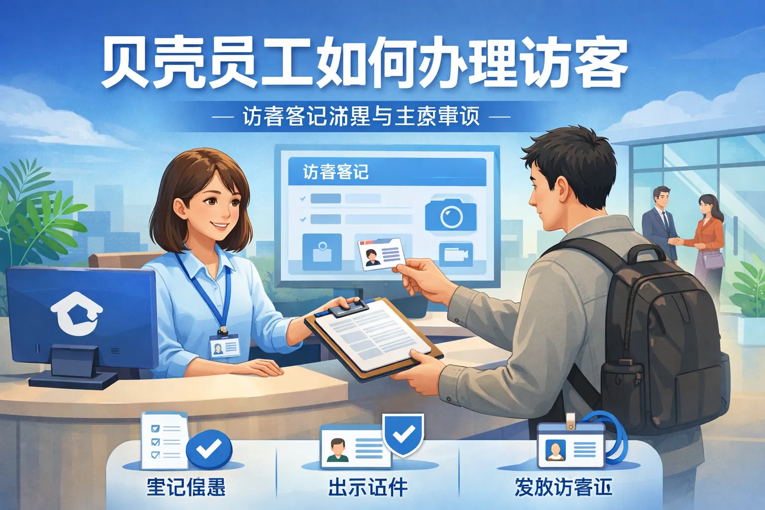 贝壳员工办理访客通常需通过内部系统提交访客信息,经部门或行政审批后生成访客凭证,访客到达时完成身份核验并领取临时通行权限。整个流程强调信息登记完整、审批分级管理与现场安全核验,符合个人信息保护与企业安全管理要求。通过数字化系统支持,访客管理实现可追溯与权限控制,既保障办公安全,也提升接待效率与企业形象。