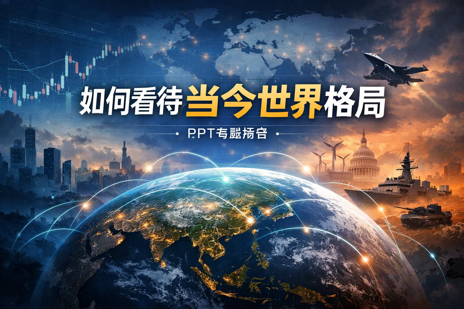 当今世界格局呈现多极化加速、全球经济与产业链重构、科技竞争加剧与全球治理体系调整并行的特征。制作相关PPT应围绕力量结构变化、经济与科技竞争、安全挑战及未来趋势展开,结合权威数据与结构化图表,突出合作与竞争并存的复杂性,从而全面理性地理解当前国际体系演变方向。