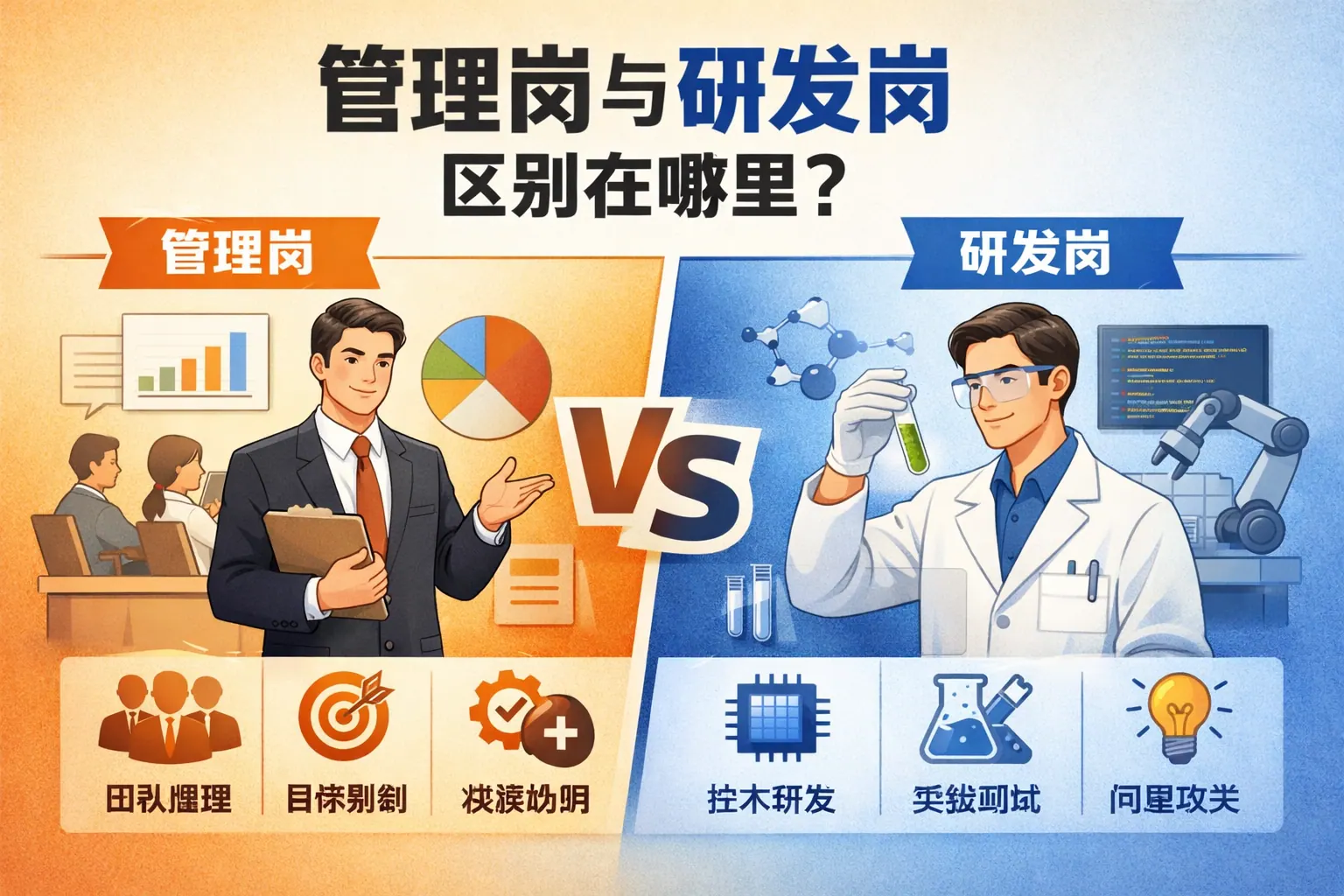 管理岗与研发岗的本质区别在于责任焦点与能力结构不同:管理岗以目标达成和团队成果为核心,强调决策、协调与组织影响力;研发岗以技术实现和问题解决为核心,强调专业深度与创新能力。两者在工作内容、绩效评价、职业路径和压力来源方面存在明显差异,但在现代企业中高度协作、相互依赖。随着数字化发展,复合型人才将成为趋势,管理与研发能力的融合将更加重要。