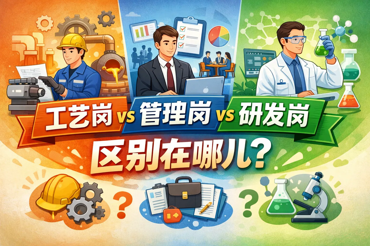 工艺岗、研发岗与管理岗的本质区别在于职责重心不同:研发负责技术创新与产品开发,工艺负责将技术转化为稳定高效的生产流程,管理负责统筹资源与实现组织目标。三类岗位在能力模型、发展路径、压力来源和收入结构上均存在明显差异,但并无高低之分。随着数字化与智能化发展,岗位边界逐渐融合,复合型能力成为趋势。选择岗位应结合个人兴趣、性格特征与长期职业目标综合判断。