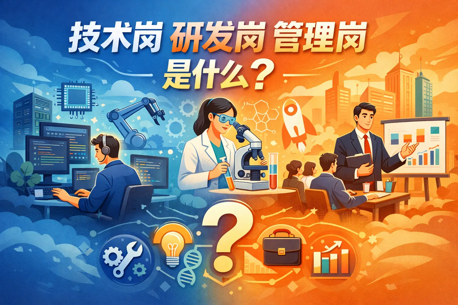 技术岗侧重专业技能与具体技术输出,研发岗强调创新与产品落地,管理岗则聚焦组织协调与资源整合。三类岗位在职责、能力结构与发展路径上存在明显差异,但在企业运行中相互协作、共同支撑业务目标实现。随着数字化发展,岗位边界趋于融合,具备复合能力的人才将更具竞争力。
