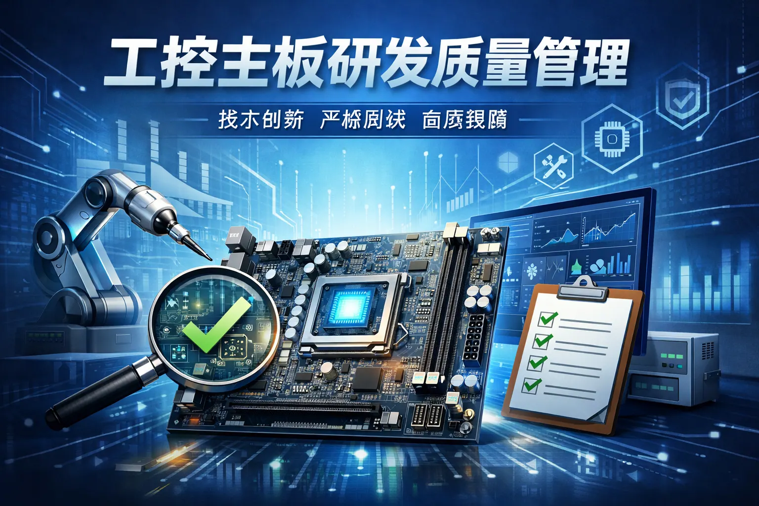 工控主板研发质量管理的关键在于建立覆盖需求、设计、测试、供应链与量产全过程的系统化质量体系,通过量化指标、严格评审、可靠性验证与持续改进机制,实现高可靠性与长期稳定运行。只有将质量前置到研发阶段,并结合数据化管理与标准化流程,企业才能在复杂工业环境中保障产品安全与竞争力。未来质量管理将更加数字化与体系化,成为核心竞争能力。
