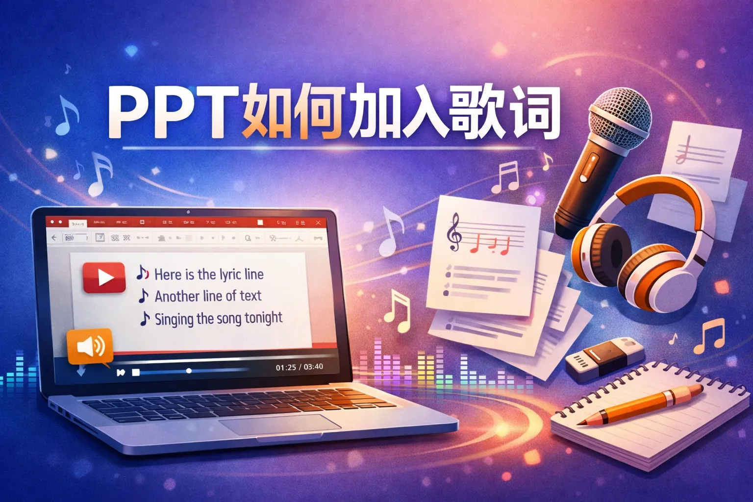 ppt如何加入歌词