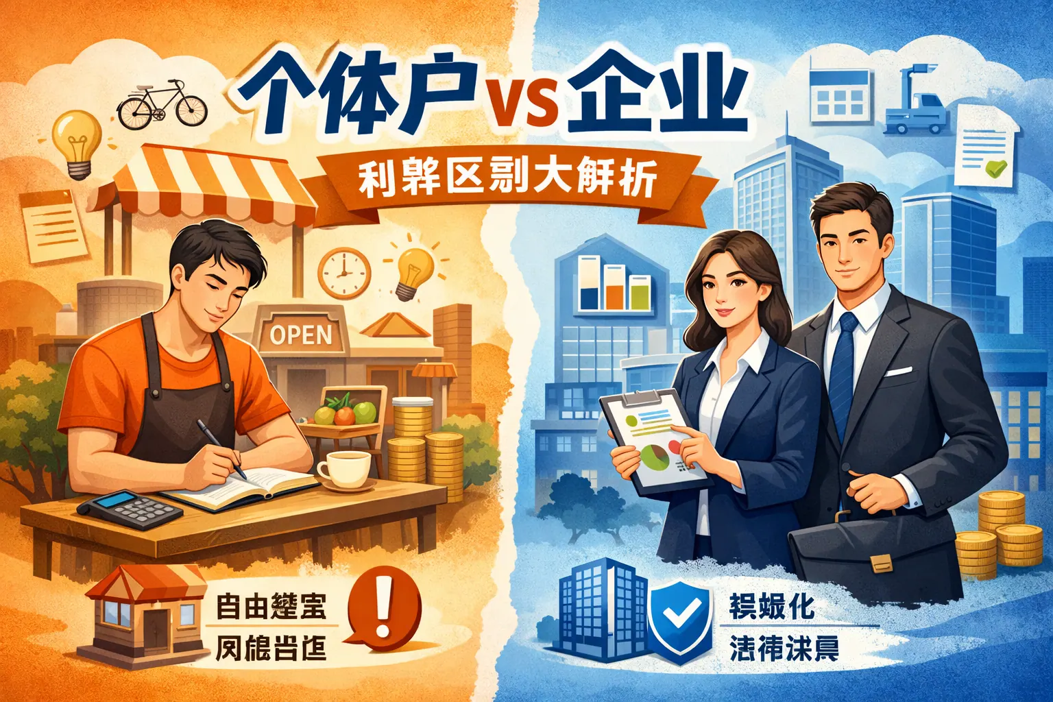 个体工商户与企业的核心区别在于法律责任、税务结构、融资能力和发展空间。个体户设立简单、成本低、税务灵活,但需承担无限责任,融资与扩张能力有限;企业具备独立法人资格,责任有限,更易获得融资与建立品牌,但设立和管理成本较高。创业者应根据风险承受能力、行业特性和长期发展目标进行选择,小规模经营适合个体户,计划规模化和资本运作则更适合企业形式。随着市场监管和数字化管理发展,企业制度化优势将进一步增强。