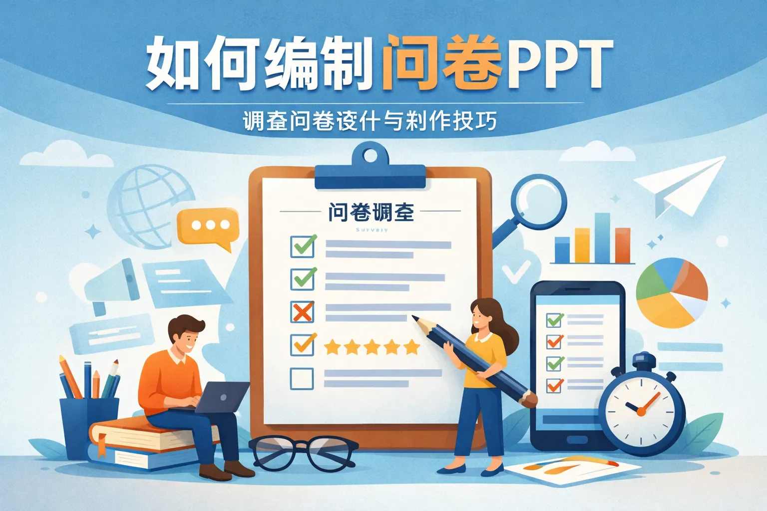 编制问卷PPT的核心在于围绕调研目标构建清晰逻辑结构,并系统呈现问卷设计思路、样本规划与数据分析方案。高质量问卷PPT不仅展示题目内容,更要说明设计依据、题型选择理由、逻辑跳转安排及数据质量控制方法,同时通过结构图、对比表和流程图增强表达专业度。结合科学的样本设计与数据规划,并在视觉呈现上保持逻辑清晰,才能让问卷方案具备说服力与可执行性。
