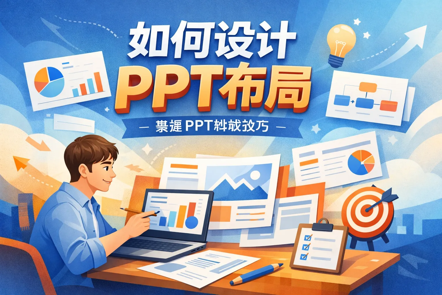 本文结合两份行业权威报告,从底层逻辑、模板拆解、场景适配、优化技巧、工具选择和避坑指南六个维度,系统讲解PPT布局设计的实战方法,指出模块化布局可提升37%信息吸收率,视觉权重分配能降低认知负荷,还提供了六种通用布局模板和对比表格帮助使用者选择适配场景,帮助职场人快速搭建专业合规的演示页面。
