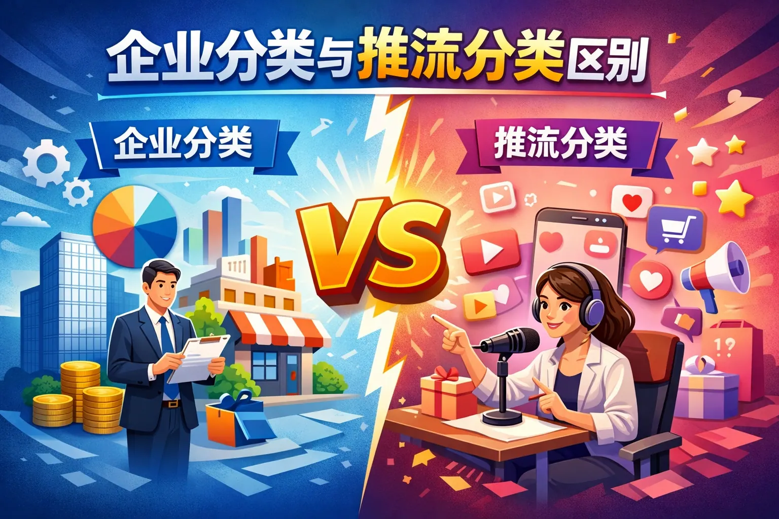 企业分类与推流分类本质不同:前者基于法律与行业标准,用于界定企业身份、监管属性与市场定位,强调稳定性与合规管理;后者基于算法与用户行为数据,用于内容或商品分发,强调动态调整与转化效率。企业分类决定“企业是谁、能做什么”,推流分类决定“内容给谁看、如何获得流量”。在数字化时代,企业需同时理解两种分类逻辑,建立合规与流量协同机制,才能实现持续增长。