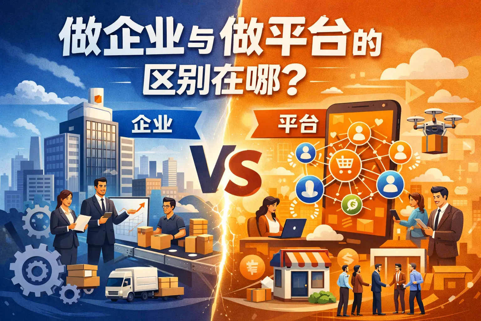 做企业与做平台的本质区别在于价值创造方式与增长逻辑不同:企业依赖产品和服务交付,通过内部效率提升实现线性扩张;平台依赖连接与撮合,通过网络效应实现规模放大。两者在商业模式、盈利结构、组织管理、技术架构和风险类型上存在系统差异。企业强调执行与成本控制,平台强调生态治理与开放能力。未来趋势是两种模式相互融合,但战略选择仍需基于行业结构与资源条件。