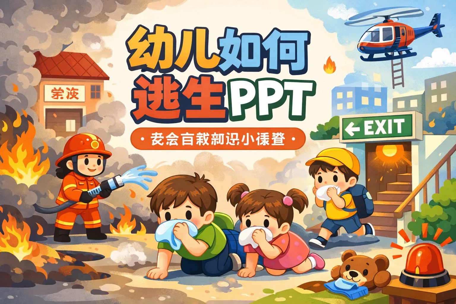 本文围绕幼儿逃生PPT的设计、制作、落地与优化全流程展开,明确核心设计原则为场景化替代说教,拆解了初始导入、场景演练等四大内容模块,对比了国内外设计差异,结合两份权威行业报告的数据,给出了适配幼儿认知的视觉交互技巧,并配套了实景演练与家校协同的教学执行方案,同时提出以幼儿逃生动作掌握率为核心的效果评估与迭代方法,帮助打造高效实用的幼儿逃生教学PPT。