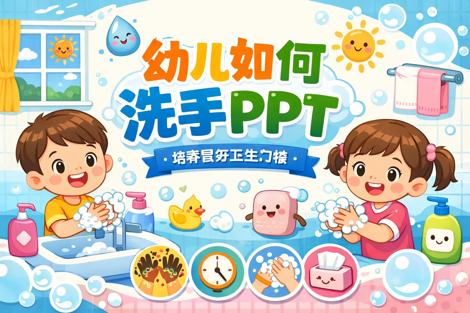 制作小班“如何洗手”PPT的关键在于将科学洗手步骤转化为幼儿易理解、易模仿的图像化内容,通过简化步骤、情境化讲解、儿歌辅助与互动游戏,帮助孩子建立饭前便后洗手的习惯。结合权威健康建议与家园共育方式,可以有效提升幼儿卫生意识与健康素养,为长期良好生活习惯打下基础。