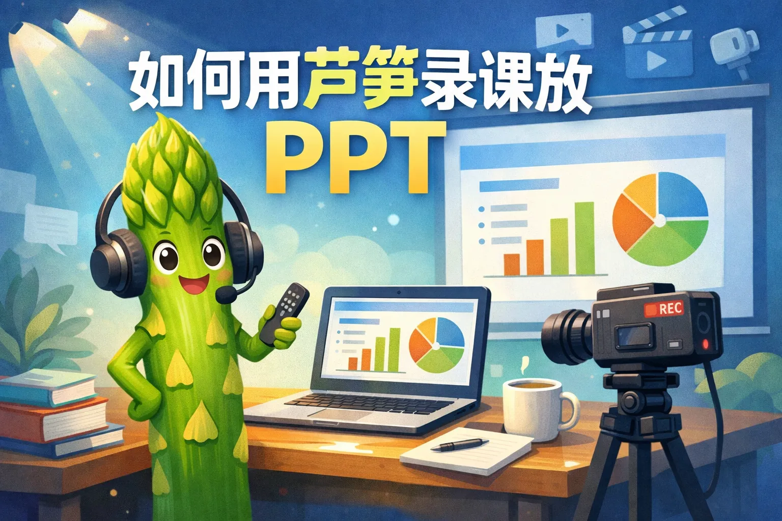 如何用芦笋录课放ppt