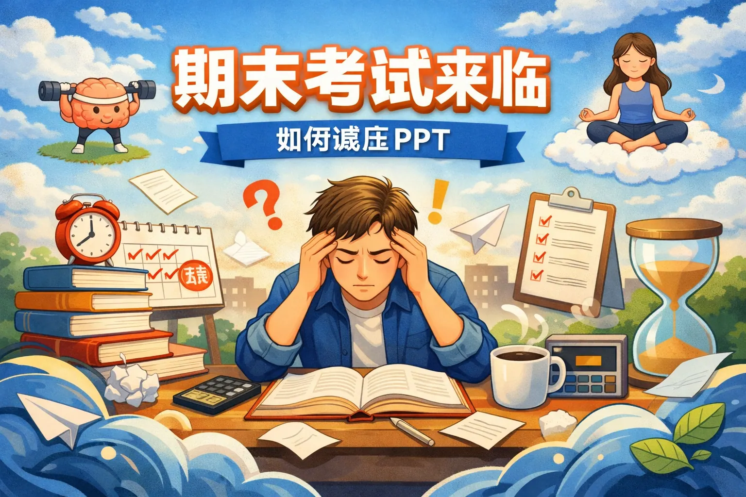 本文系统解析了考试压力的来源、心理机制与生理反应,结合权威研究提出科学时间管理、情绪调节与家庭支持等减压策略,并提供PPT结构设计建议与风险识别方法。通过多维度干预与心理韧性培养,学生可以有效缓解考试焦虑,树立健康积极的学习观念,实现成绩提升与身心平衡的统一。