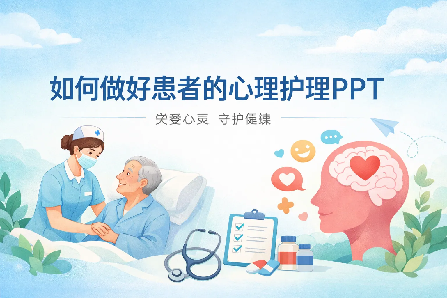 制作“如何做好患者的心理护理PPT”应围绕理论基础、心理评估、常见问题识别、沟通技巧及案例分析展开,结构清晰、内容循证且注重实操性。通过系统呈现心理护理理论与临床应用方法,结合权威资料与对比表格,能够帮助医护人员提升共情与沟通能力,改善患者依从性与就医体验。未来心理护理将更加整合化与数字化,但以患者为中心的理念始终是核心。