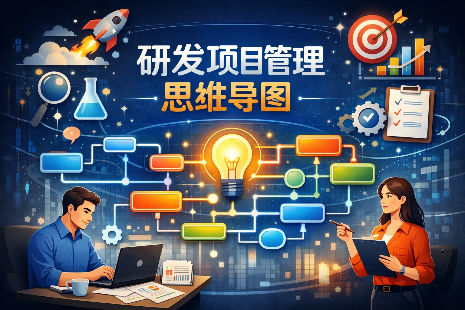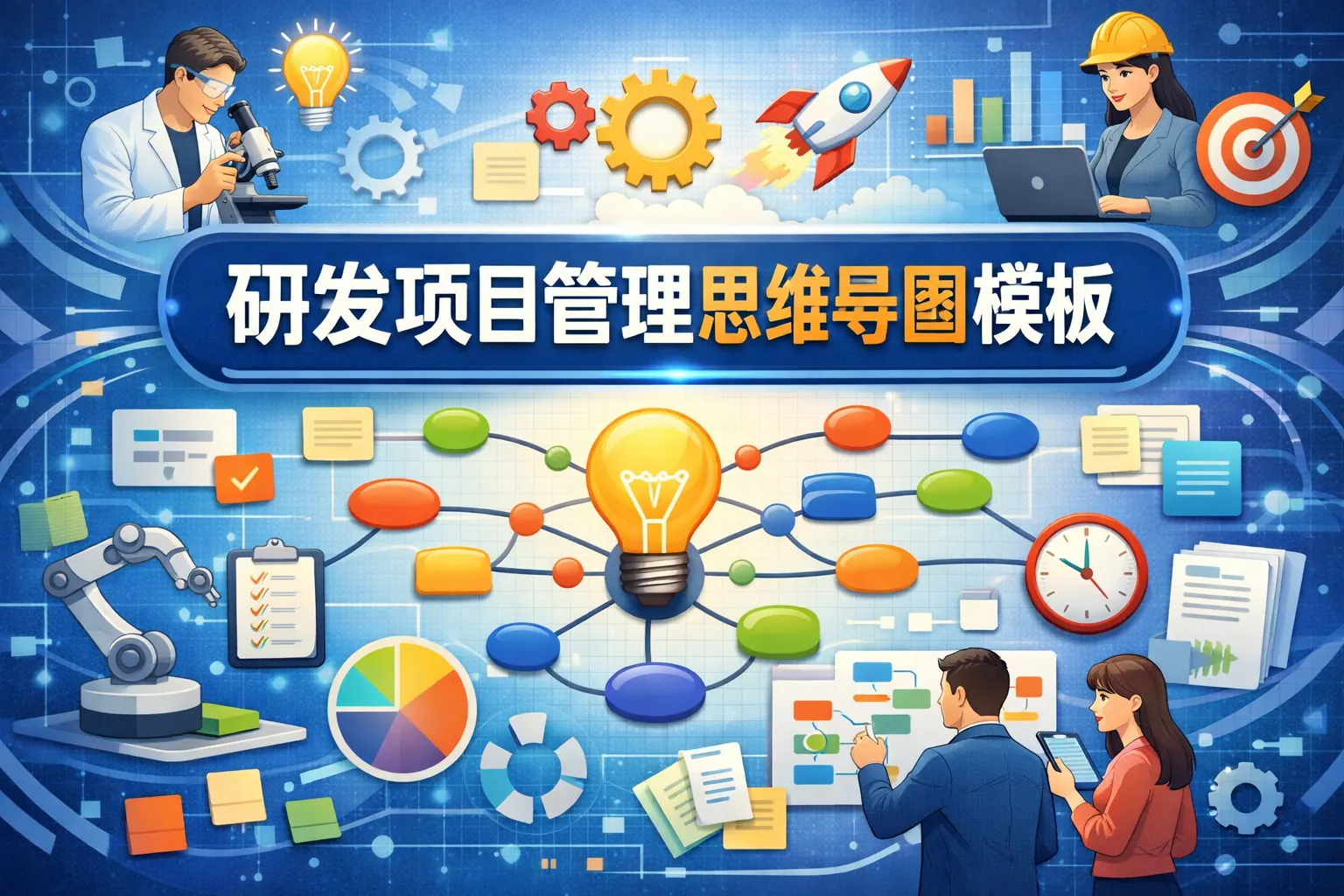 研发项目管理思维导图是一种以项目目标为核心,通过结构化方式整合需求、计划、资源、质量与风险等要素的管理工具。它能够提升团队认知统一度与执行可控性,适用于项目启动、执行与复盘全过程,并可与敏捷方法结合。未来,思维导图将向数据驱动与智能决策方向演进,成为研发体系建设的重要组成部分。