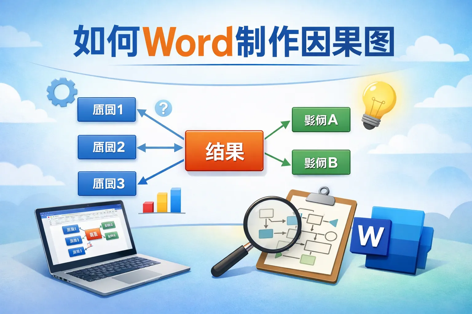在 Word 中制作因果图的关键在于合理运用形状、连接线与 SmartArt 功能,将问题结果、主要原因与次级原因进行结构化呈现。通过主干线搭建、分支划分、文本框标注和对齐排版优化,可以绘制出专业清晰的鱼骨图或层级因果图。相比专业绘图软件,Word 更具普及性和实用性,只要掌握图形布局与逻辑结构设计方法,就能高效完成适用于报告、论文与项目分析的因果图。未来工具将更智能化,但结构化思维仍是核心能力。