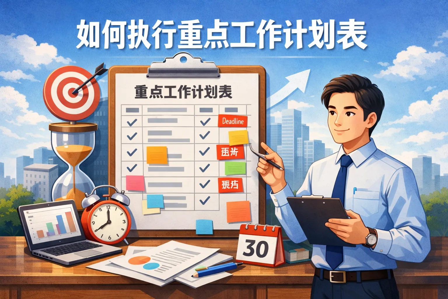 本文提出执行重点工作计划表的系统化方法:以清晰目标与范围为起点,拆解里程碑与任务并设定验收标准;用优先级模型与资源排期控制关键路径;通过固定节奏、仪表盘与预警机制实现进度可视化;以风险登记与变更控制保障稳态执行;通过会议机制与RACI提升跨部门协作;通过复盘与指标体系推动持续改进,并结合自动化与合规平台提升数据化与可追溯性。