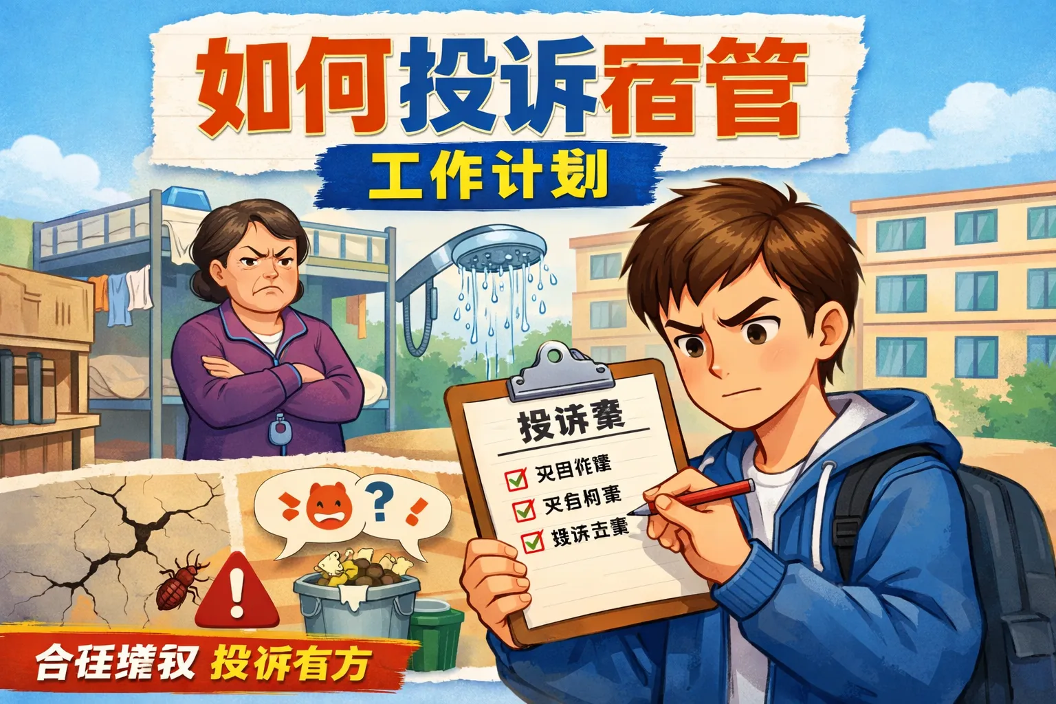 要有效投诉宿管工作计划,先明确问题与边界,将情绪转化为证据与数据驱动的诉求,再按校内—校务公开—纪检/信访分层路径推进并形成留痕。围绕值班、巡查、维修SLA与信息公开建立“事实—影响—建议”三段式文书,配合时间线与对照表提升可核验性。在沟通中坚持先对事后对人,提出可落地替代方案与试行期,必要时升级渠道并引用教育部与信访条例的政策依据。通过工单化与定期复盘,将投诉进一步转化为宿管计划的透明化、SLA化与数据化共治。