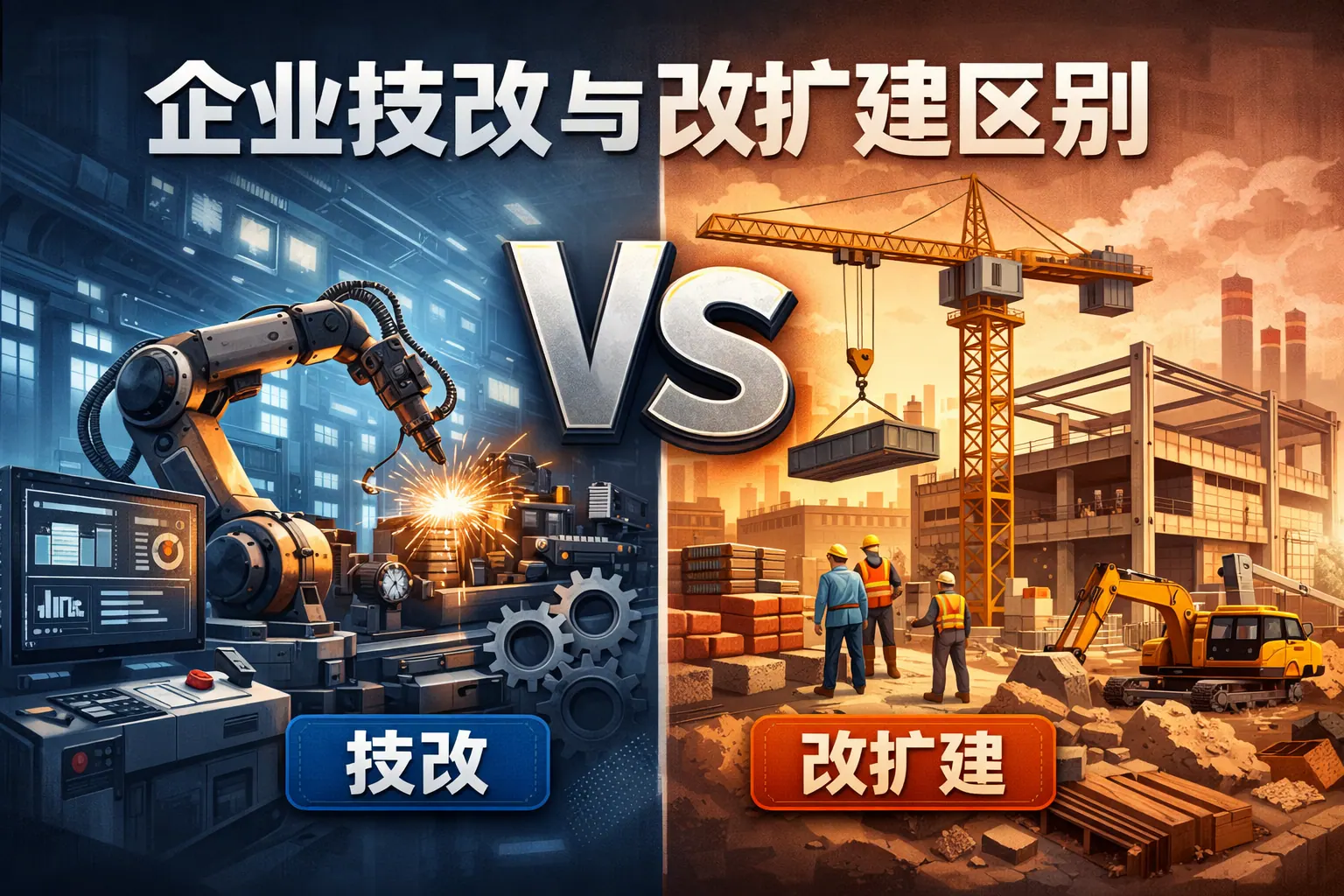 企业技改与改扩建的核心区别在于发展逻辑不同:技改侧重在原有基础上通过设备升级、工艺优化和数字化改造实现提质增效,属于内涵式增长;改扩建则通过新增厂房、生产线和产能扩大规模,属于外延式增长。两者在投资规模、审批流程、财务影响、政策支持和风险结构方面均存在明显差异。当前政策更鼓励节能降耗与智能升级类技改项目,但在市场需求旺盛情况下,改扩建同样具有战略意义。企业应结合产能利用率、资金实力与行业趋势进行综合决策。