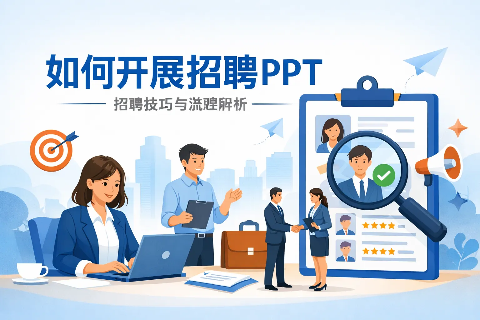 制作招聘PPT的关键在于围绕岗位匹配与雇主价值构建清晰结构,结合企业优势、岗位职责、薪酬成长路径进行系统呈现,并通过数据化表达和专业视觉设计增强可信度。高质量招聘PPT应遵循吸引、信任、匹配、行动的逻辑路径,避免信息堆砌和表达模糊。未来招聘PPT将更加注重品牌表达、互动体验与数字化呈现,成为企业吸引人才的重要工具。