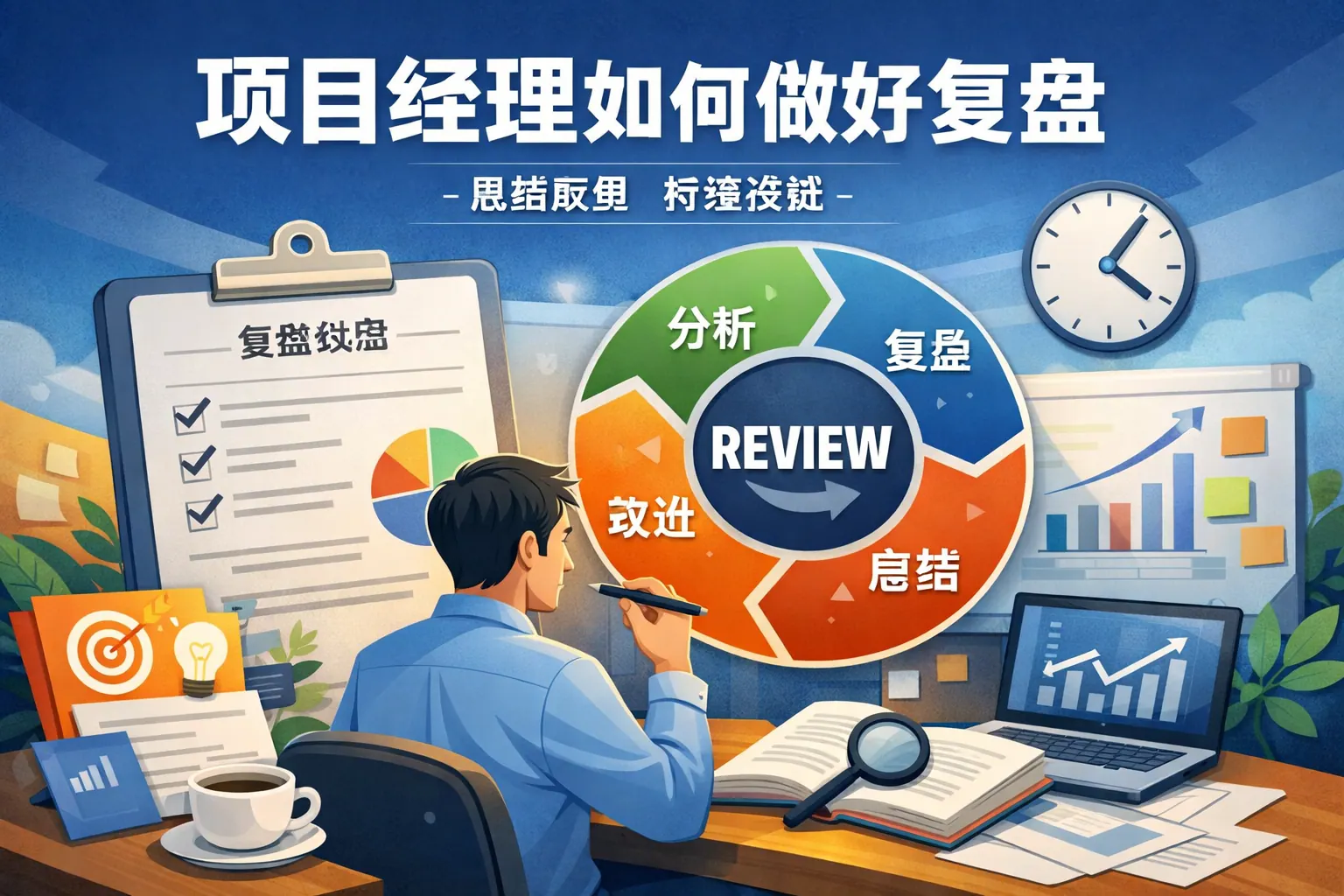 项目经理做好复盘的关键在于建立结构化流程、数据驱动分析和可落地的改进行动机制。高质量复盘应围绕目标回顾、过程还原、根因分析、经验提炼与行动优化展开,并结合量化指标避免主观判断。同时,要避免批评化、形式化和缺乏沉淀等误区,将复盘纳入制度流程,实现知识积累与持续改进。未来项目复盘将更加数据化与智能化,但核心仍是组织学习能力的提升。