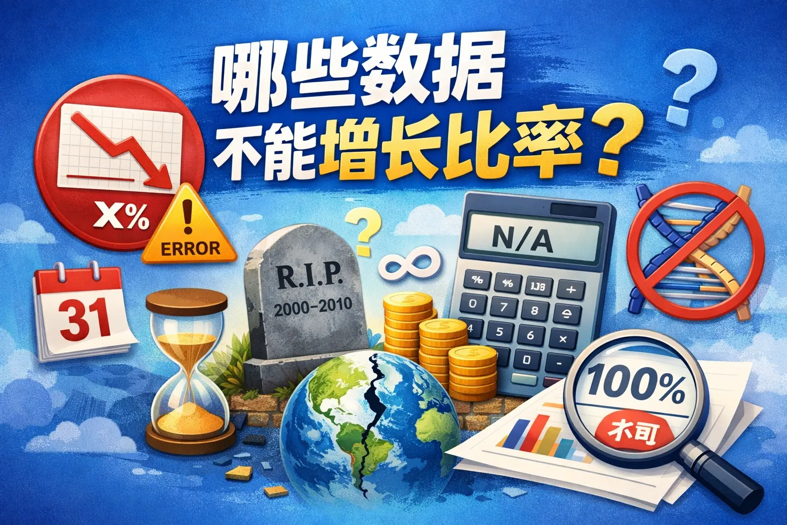 并非所有数据都适合计算增长比率,比例型数据、已是比率形式的数据、存在上限或下限的指标、类别型数据以及基数过小的数据,都不应直接使用增长率表达变化。增长率只适用于具备明确数量属性、连续可比且无边界限制的规模型数据。正确区分数据类型,选择百分点变化或绝对差值等更合适的表达方式,才能避免统计误导,提升数据分析的专业性与决策质量。