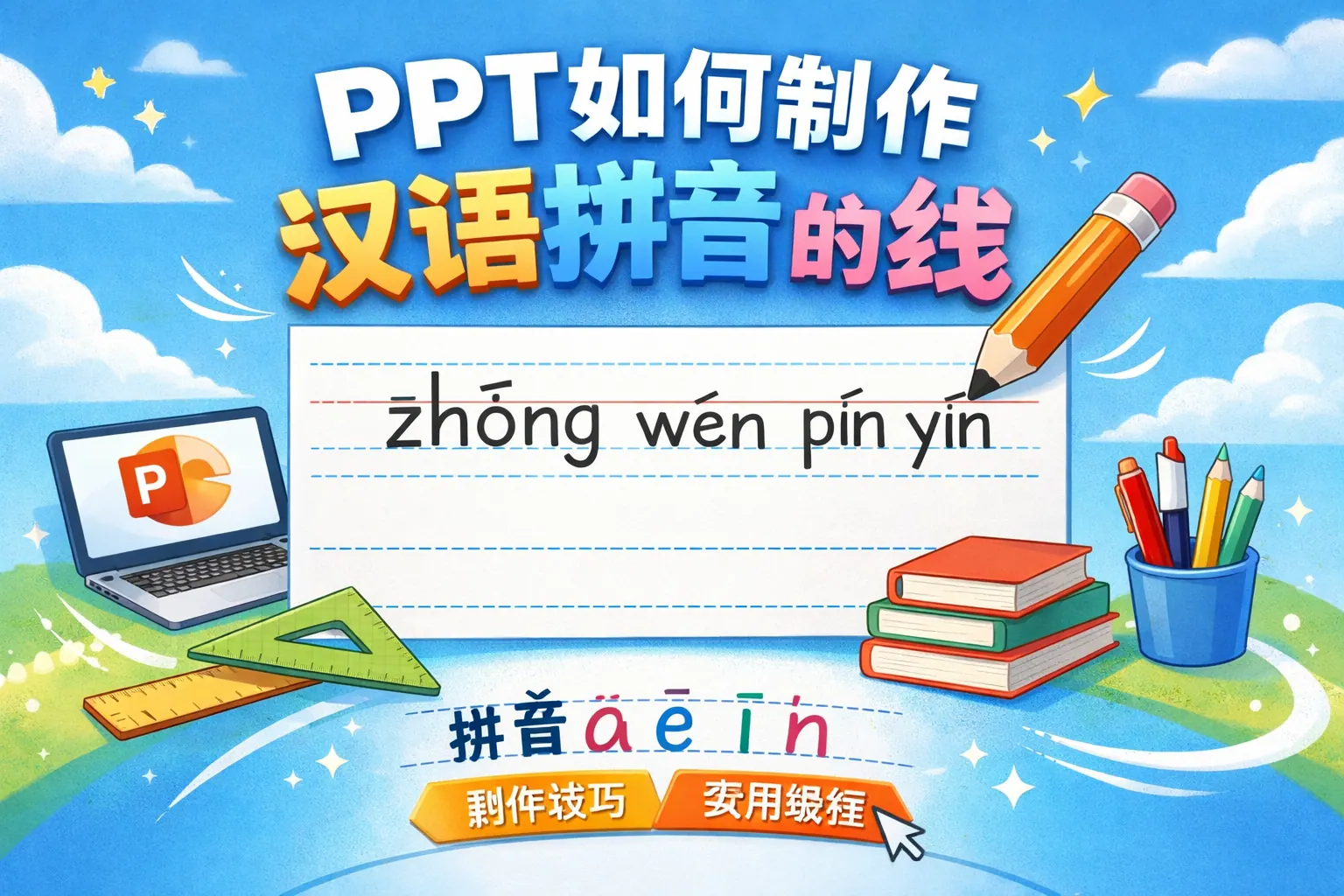 ppt如何制作汉语拼音的线