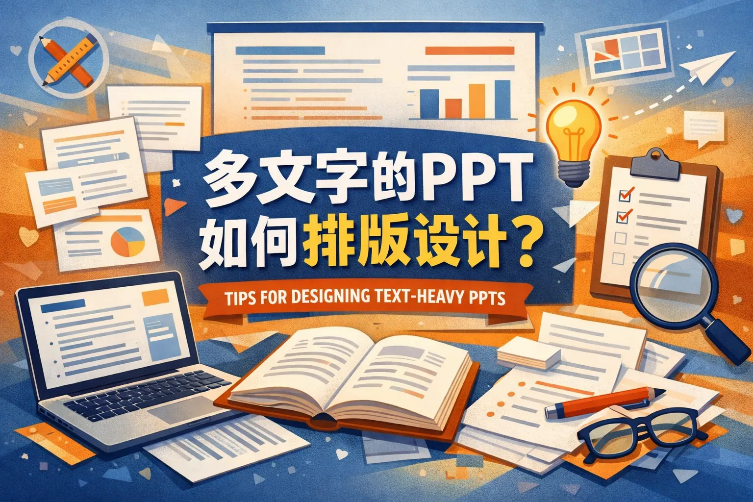 多文字PPT排版设计的关键不在于简单删减内容,而在于通过信息分层、结构重组、关键词强化、表格转化和合理留白提升阅读效率。文章系统阐述了信息分块、视觉层级构建、版式模型应用与屏幕阅读优化方法,并结合权威研究说明清晰结构的重要性。掌握模块化与视觉化表达思维,能够在文字较多的情况下依然实现逻辑清晰、重点突出与视觉舒适的专业演示效果。