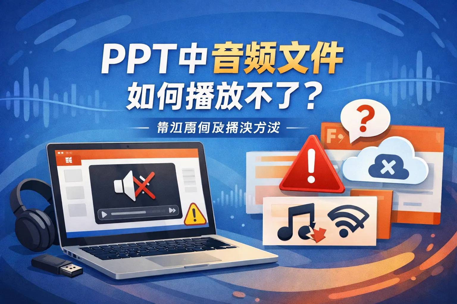 PPT中音频文件播放不了通常由格式不兼容、文件路径丢失、编码异常或系统设备设置错误引起。解决问题应从音频格式转换为通用MP3、确保采用嵌入而非链接方式、检查文件是否损坏以及排查系统音频输出设置等方面入手。同时在跨设备或跨平台使用时提前测试,统一格式并做好备份,可以有效避免播放失败风险。
