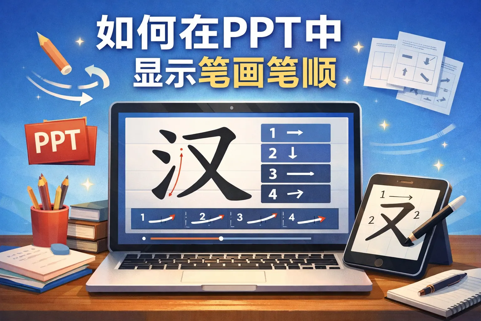 在PPT中显示笔画笔顺的关键在于将汉字拆分为独立笔画对象,并通过动画顺序控制实现规范展示。可采用形状拆分、矢量导入或模板批量制作等方式,提高效率与准确性。结合权威笔顺规范与合理动画参数设置,不仅能提升教学专业度,还能增强课堂互动效果。随着多媒体技术发展,笔顺动画制作将更加智能化和便捷化。