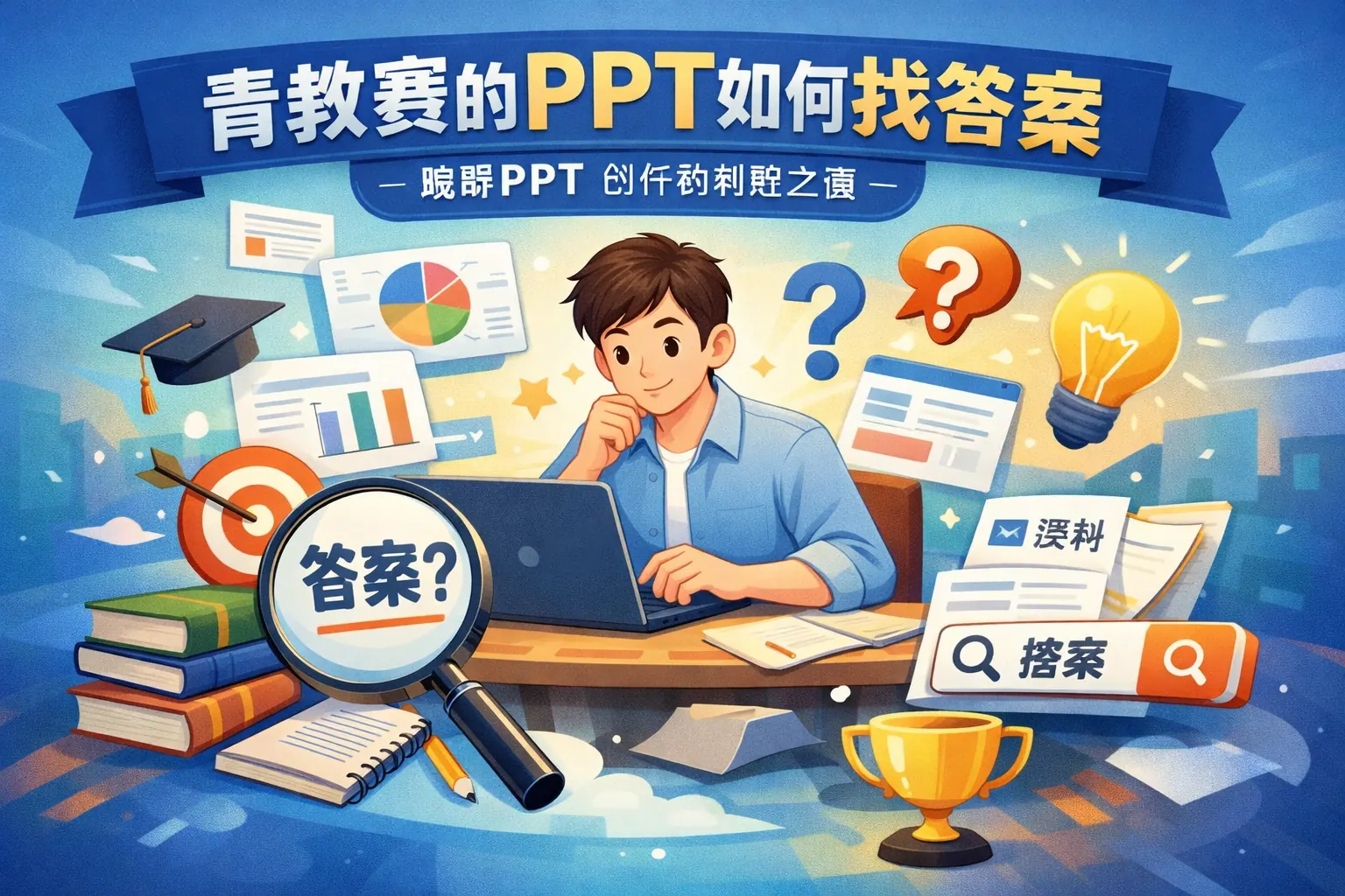 本文系统阐述了青教赛中如何从PPT中“找答案”的方法,指出答案本质上是评委判断教学质量的证据集合,而非单一结论。文章从评审逻辑入手,依次分析教学目标、结构目录、核心概念、案例设计、视觉元素与总结评价等关键页面,说明它们如何分别承载不同类型的答案。同时提出通过建立答辩问题与PPT页面对应的索引表,实现从被动找答案到主动放答案的转变,并预测青教赛将更加重视教学证据的前置与可视化呈现。