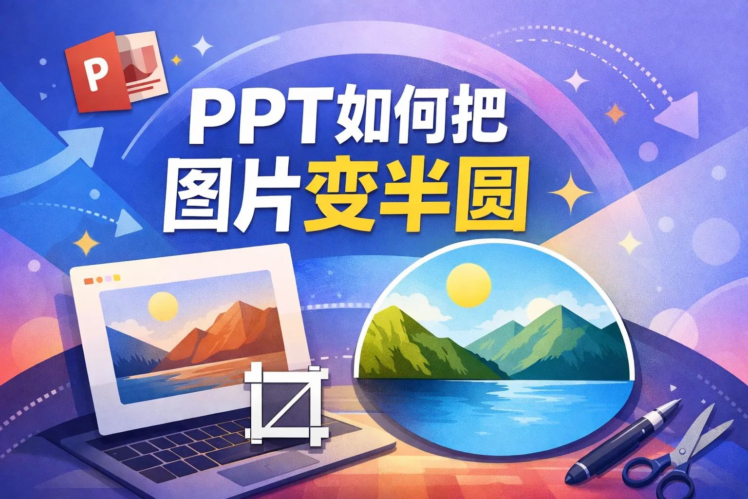 PPT如何把图片变半圆