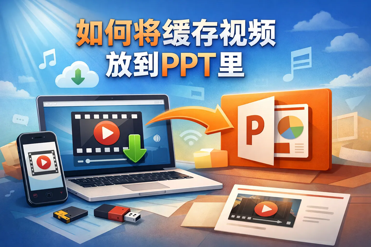 如何将缓存视频放到ppt里