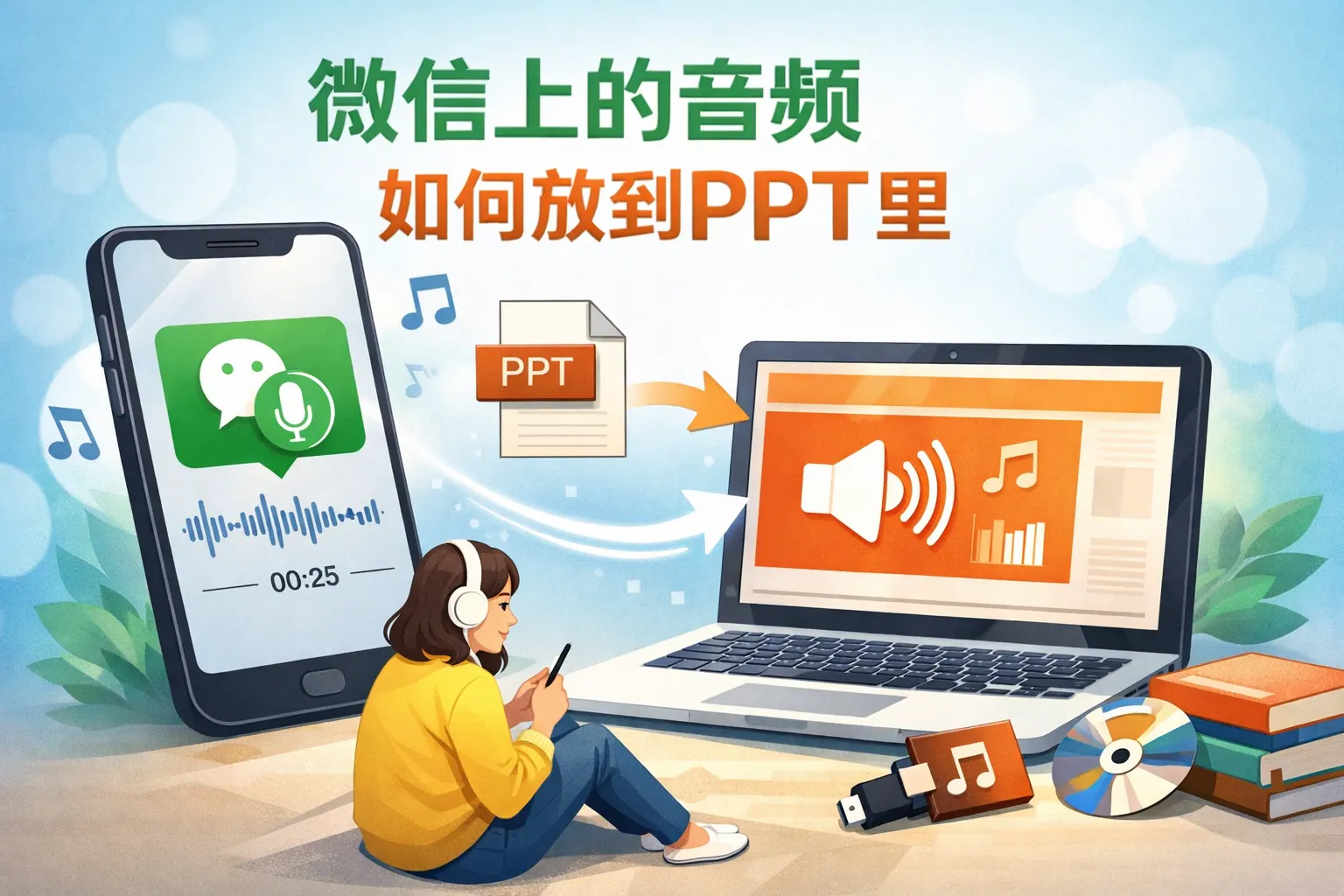 微信上的音频如何放到ppt里