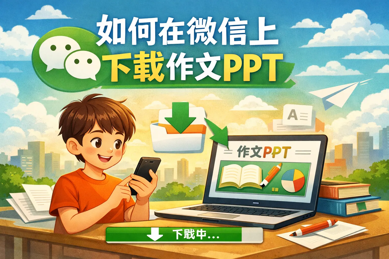 如何在微信上下载作文PPT