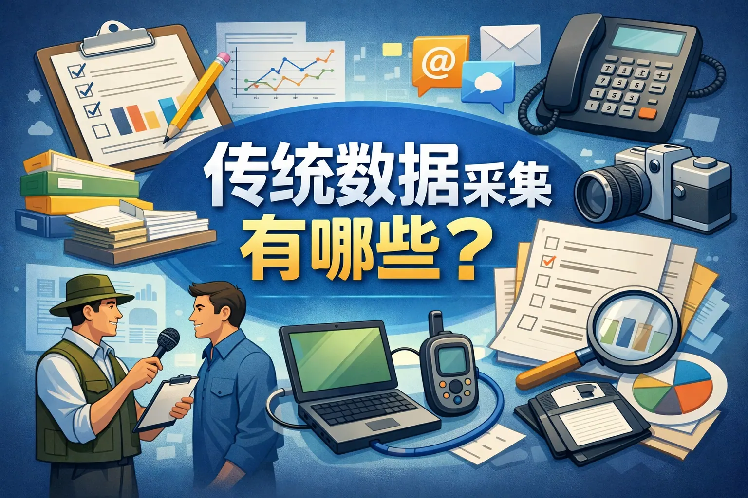传统数据采集主要包括人工手工记录、纸质问卷调查、电话访问、现场观察、纸质档案整理以及仪器人工抄录等方式。这些方法以人工或半自动为核心,具有灵活性强、适应复杂环境、前期成本低等优势,但普遍存在效率低、实时性不足和易受人为因素影响的问题。随着数字化转型推进,传统数据采集正逐步向自动化与智能化升级,在特殊场景中仍保有应用价值,但整体趋势是被更高效的数据采集模式所替代。