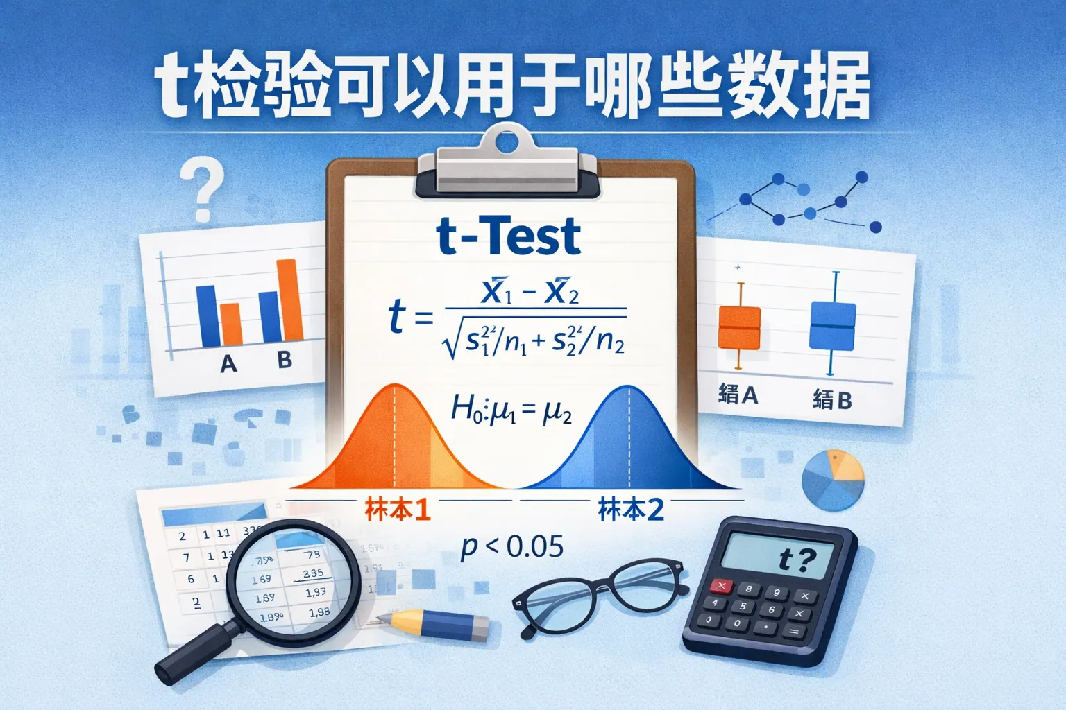 t检验适用于连续型数值数据,主要用于比较均值是否存在显著差异,包括单样本、独立样本和配对样本三种形式。其前提是数据近似正态分布、样本量适中且总体标准差未知。分类变量、严重偏态数据或多组比较场景不适合直接使用t检验。正确理解数据类型与样本结构,是科学运用t检验进行统计推断的关键。