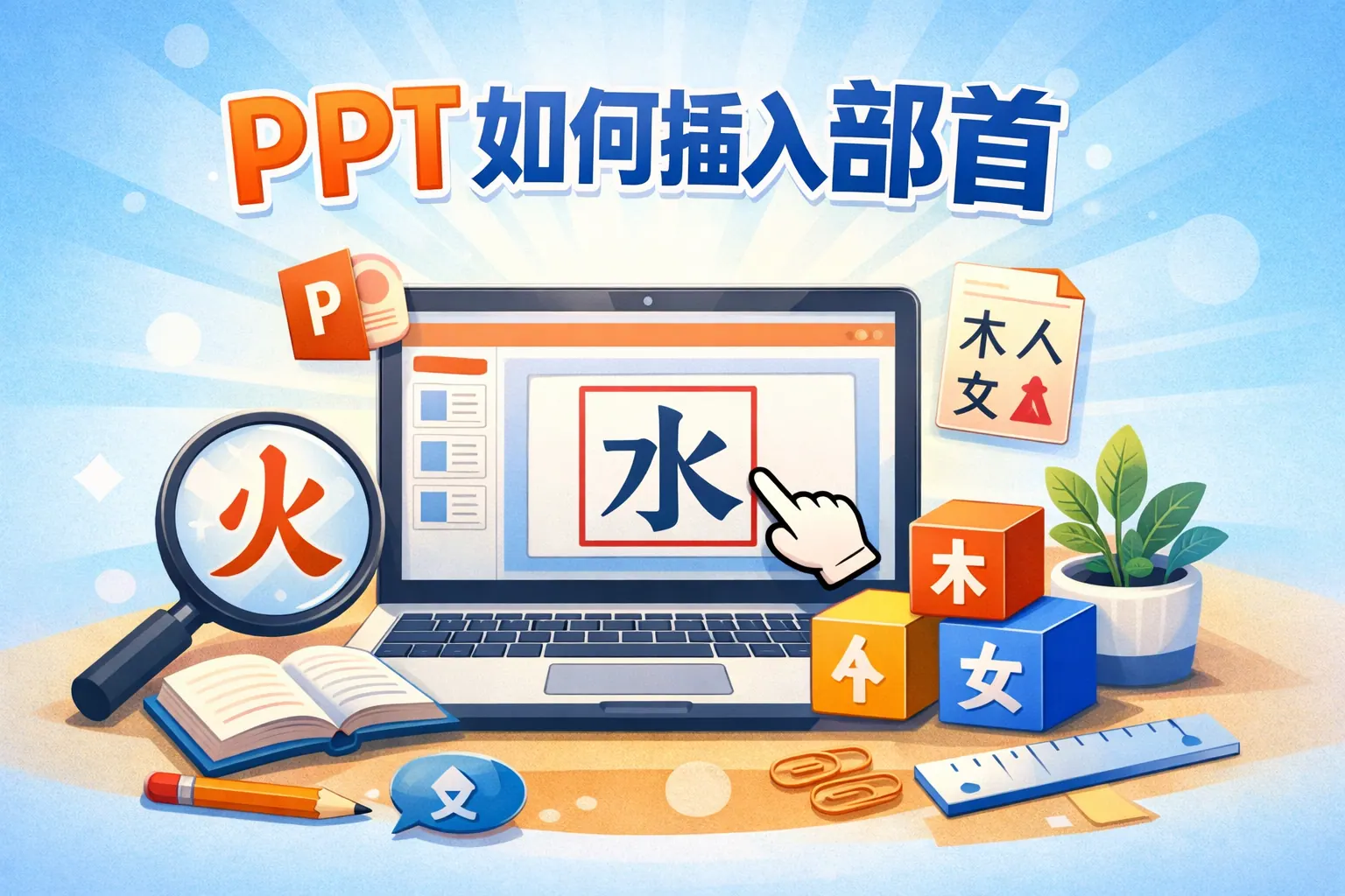 PPT 本身没有直接的“部首插入”功能,但可以通过中文输入法的部首或拆字输入、Unicode 字符复制以及形状与文本框组合三种方式实现。最推荐的是输入法和 Unicode 方法,它们兼容性高、可编辑、适合教学和正式演示;形状模拟更适合视觉化表达。关键在于选择支持完整汉字的字体,并在发布前进行跨设备测试。通过结构化设计,部首可以稳定融入 PPT 的教学与信息表达体系中。