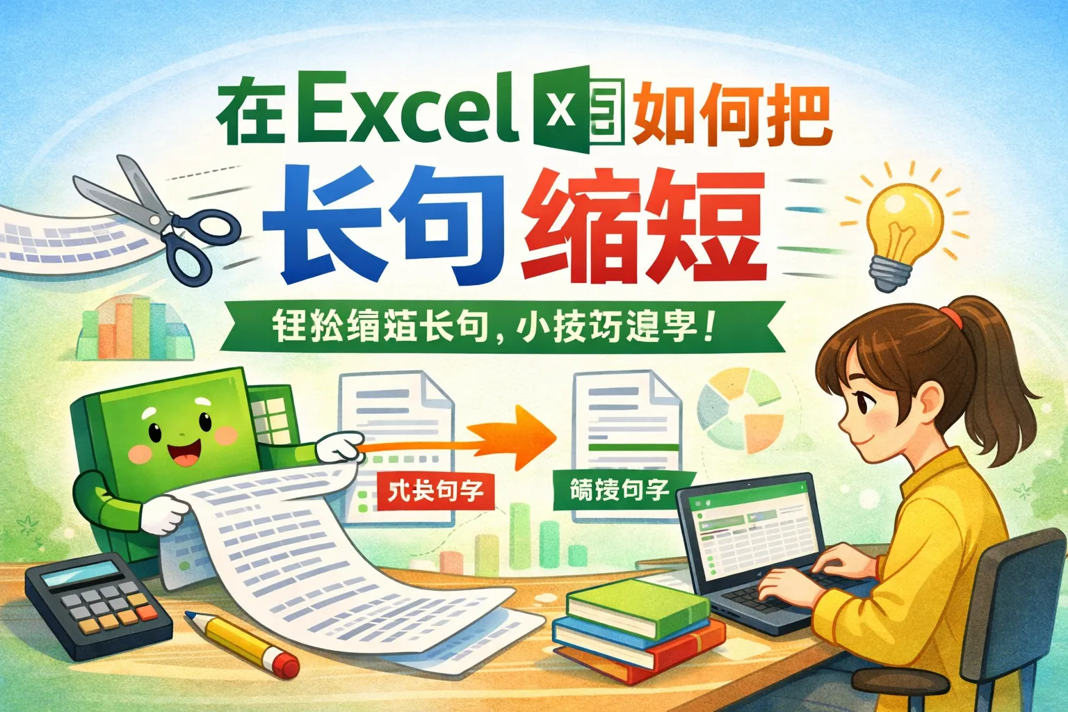 在excel里如何把长句缩短