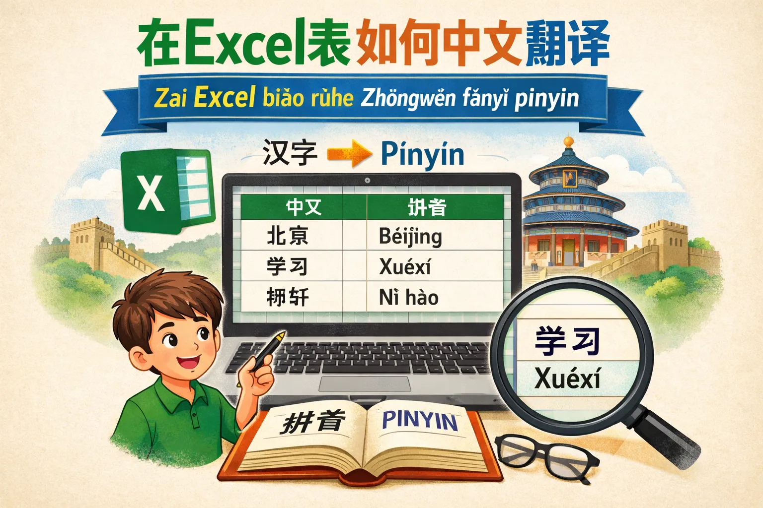 在excel表如何中文翻译拼音
