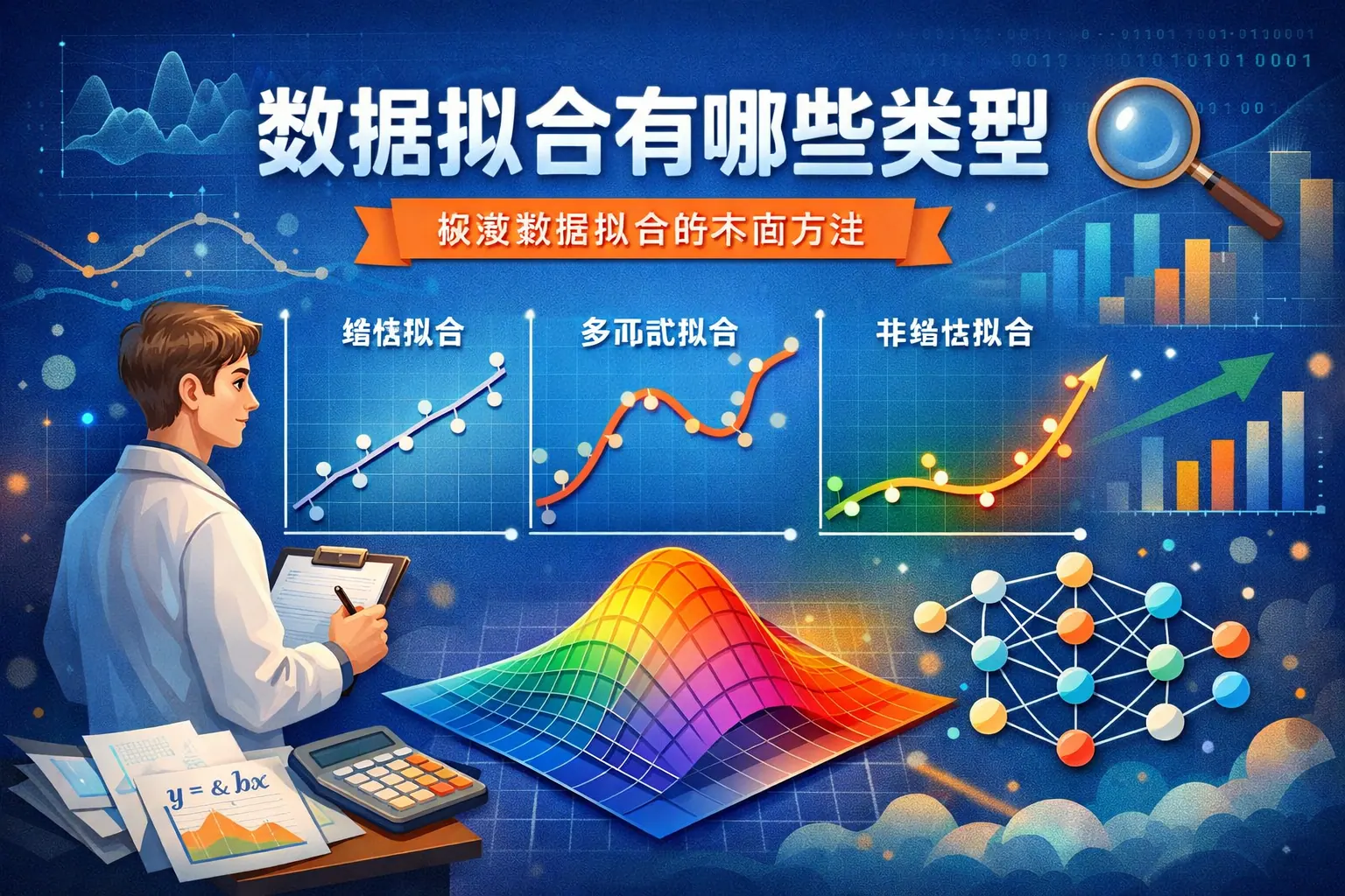 数据拟合主要包括线性拟合、多项式拟合、非线性拟合、指数与对数拟合、分段与样条拟合、回归模型拟合以及基于机器学习的复杂模型拟合等类型。不同方法在函数形式、复杂度和适用场景上存在明显差异。选择合适的数据拟合类型需结合数据分布特征、噪声水平、业务目标及模型复杂度权衡,在保证预测精度的同时兼顾解释能力与泛化性能。随着人工智能发展,数据拟合正向自动化与高复杂度方向演进。
