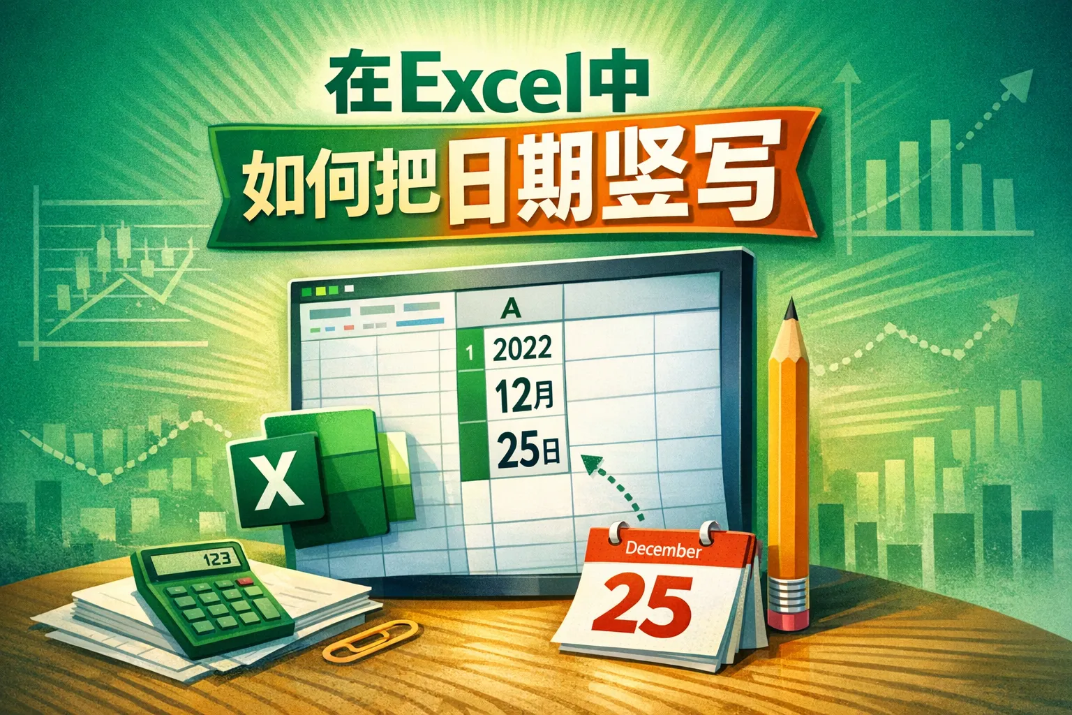 在excel中如何把日期竖写