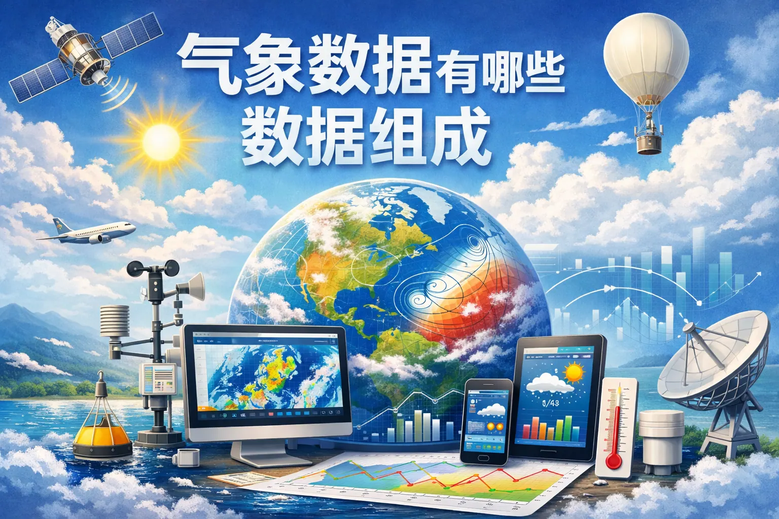 气象数据由地面观测、高空探测、雷达监测、卫星遥感、数值预报、历史气候统计及衍生分析数据等多类数据构成,涵盖从实时监测到长期气候研究的完整体系。不同类型数据在来源、结构与用途上各有侧重,但共同支撑天气预报、灾害预警与气候分析。随着技术进步,气象数据正向多源融合与智能化方向发展。