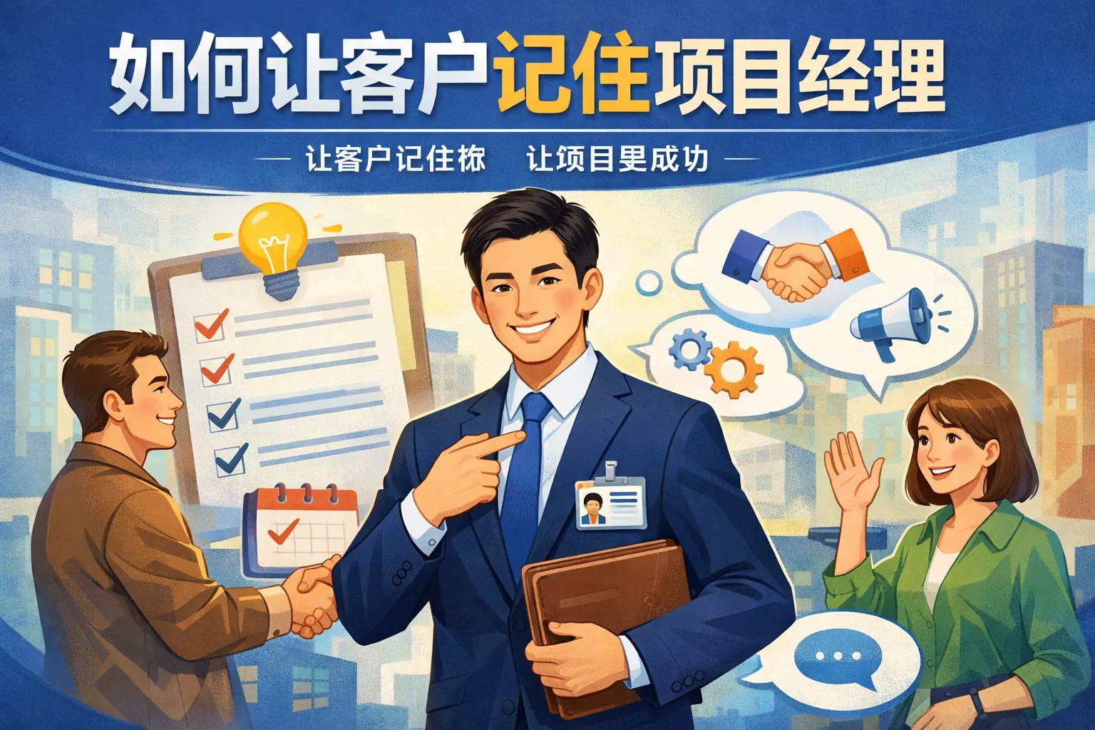 要让客户记住项目经理,关键在于建立专业可信度、形成稳定沟通标签、在关键节点创造记忆点,并通过可视化管理与情绪支持增强信任感。项目经理应从执行者升级为顾问角色,通过结构化表达、数据化成果展示和风险前置管理提升存在感。长期来看,持续输出价值与关系维护能够形成个人品牌,使客户在后续合作中主动联想到该项目经理。===