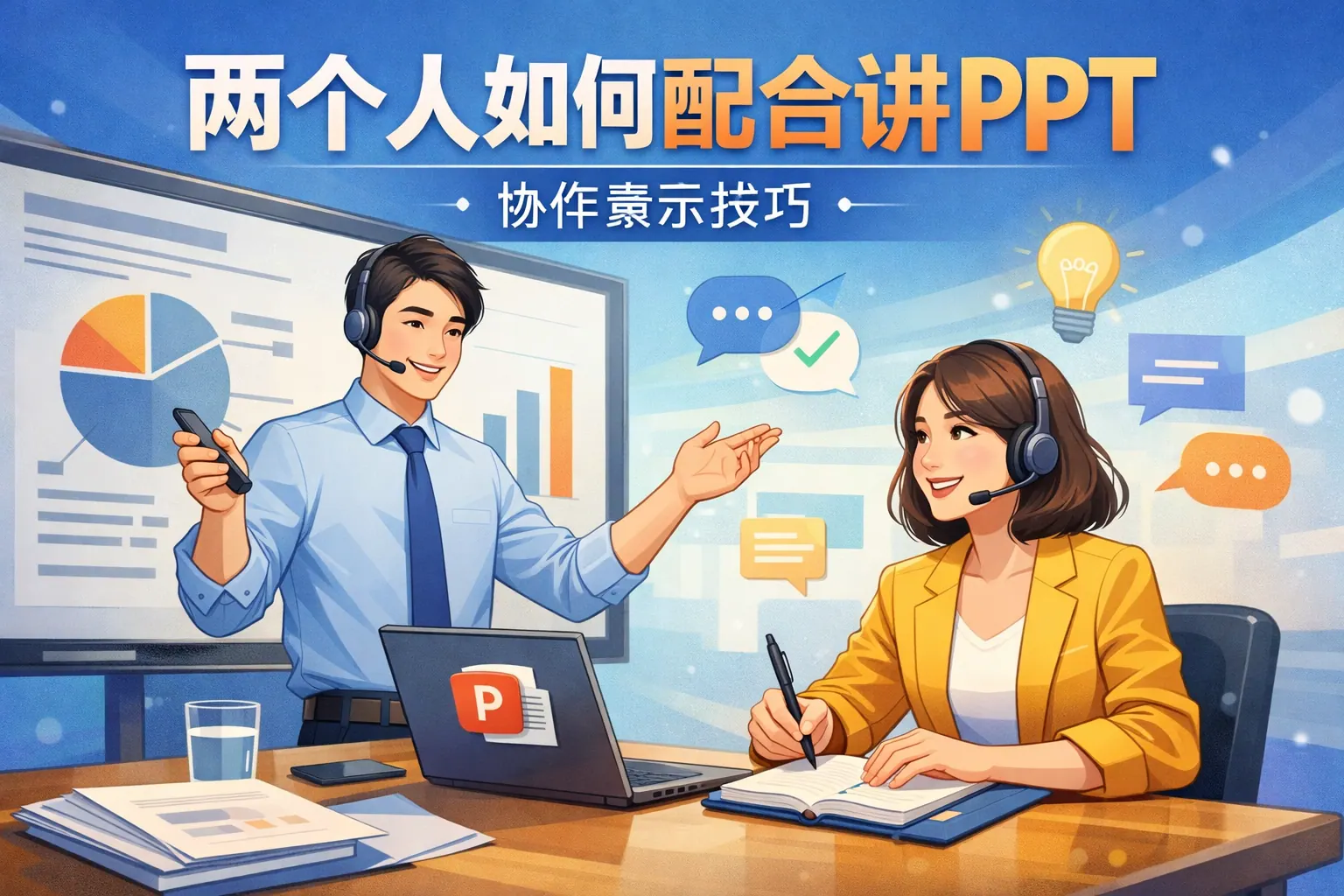 两个人配合讲PPT的关键在于协作而非简单分工。成功的双人演讲需要统一目标与逻辑结构,采用主讲加辅助的模式明确角色定位,通过科学的时间分配和自然的过渡设计保证节奏流畅。同时统一表达风格与站位,强化问答环节的协同配合,可以显著提升专业度。未来双人演讲将更加专业化和结构化,强调团队协作与叙事一致性。只要做好结构设计与多次排练,双人PPT配合完全可以实现高效且富有感染力的呈现效果。