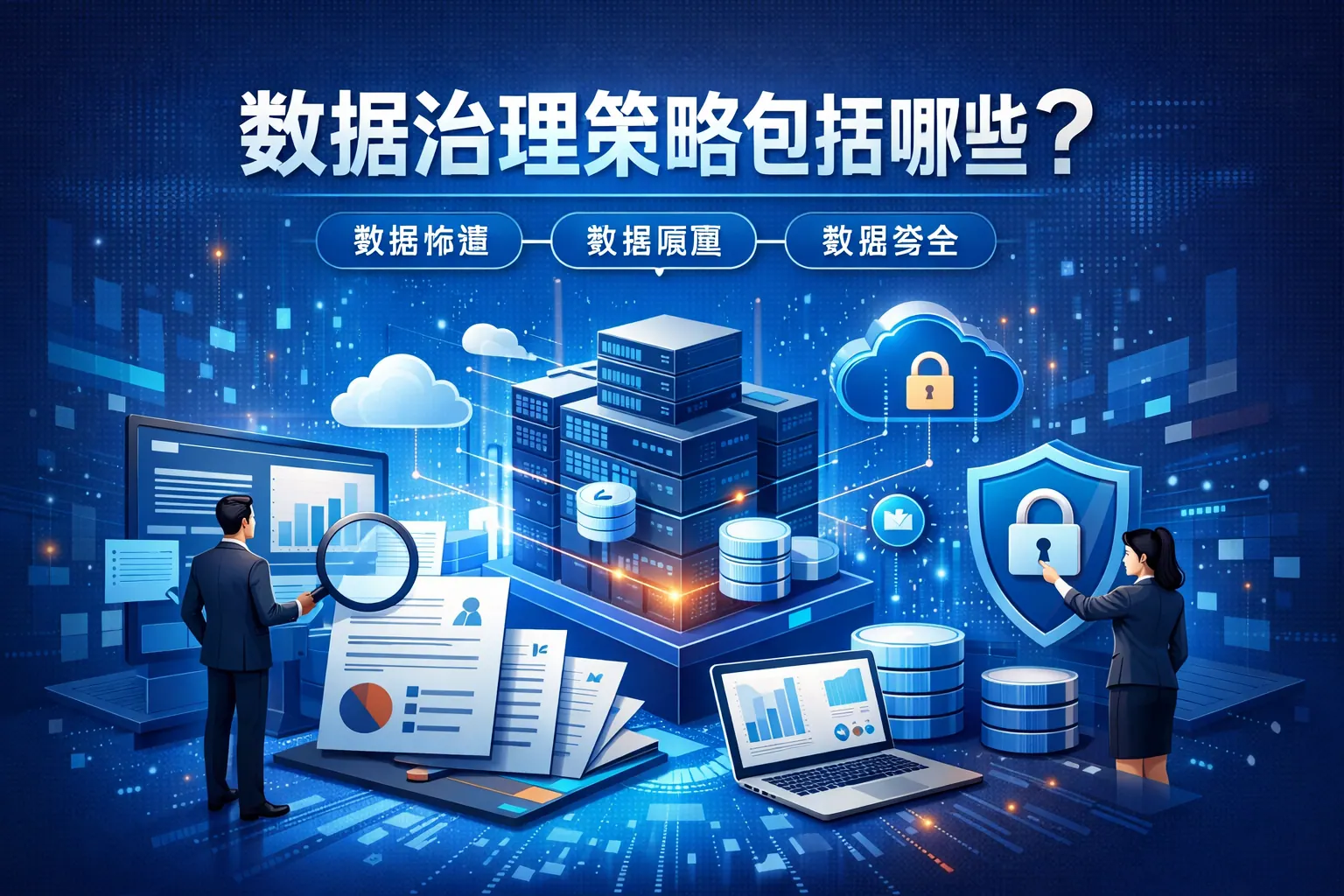 数据治理策略通常包括战略目标规划、组织架构设计、数据标准体系建设、数据质量管理、数据安全与合规控制、主数据与元数据管理、数据生命周期管理、数据架构规划以及持续优化机制等内容。通过制度、流程与技术协同,企业可以提升数据可信度与安全性,实现数据资产价值最大化,并在未来向智能化与自动化方向演进。