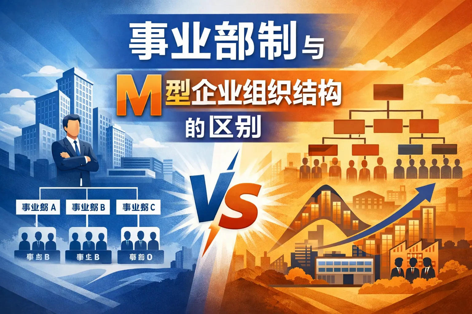 事业部制与M型组织结构的核心区别在于分权程度与总部职能定位不同。事业部制强调在统一战略下的分权经营与利润负责,适合产品多样化企业提升市场响应能力;M型结构则在事业部制基础上强化总部战略控制与资本配置功能,更适用于多元化集团实现资本效率与风险管控。两者在权力分配、财务考核、战略管理和适用阶段上存在明显差异,企业应根据规模与发展战略进行选择与组合设计。